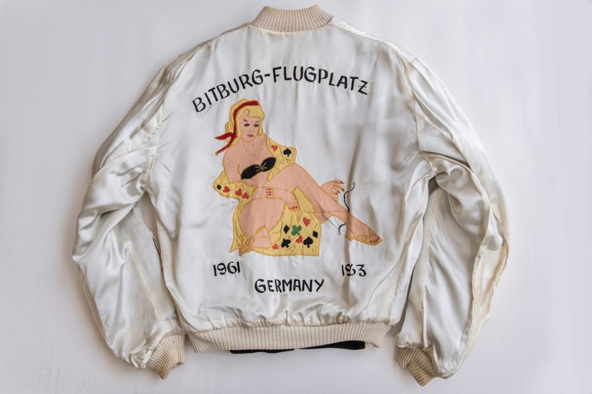 スーベニアジャケットも豊富に揃う。こちらは中でも珍しいドイツもの。その刺繍から1960年代初頭に駐留していた兵士が作ったようだ。リバーシブル。8万9900円