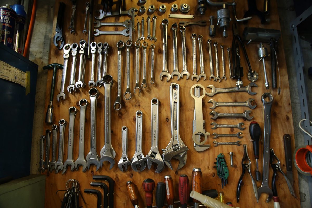 当初は保管場所くらいに考えていたガレージだが、専用の工具や機械が増え、今ではバイクショップ顔負けの環境となっている。完璧なガレージビルダーだ。