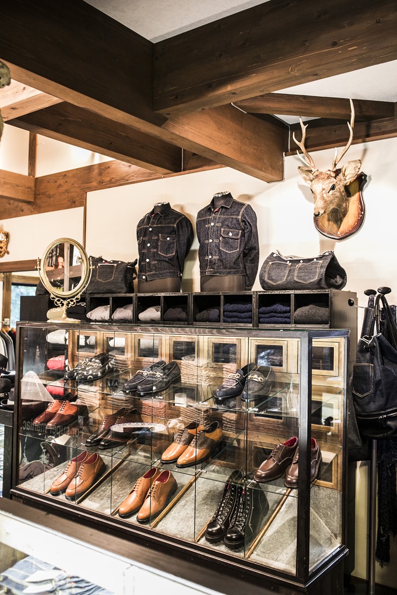 フロアは1階入り口付近に定番ジーンズが置かれ、全体的にカジュアルメインのフロア。2階には、ジャケットやシャツなどドレスアイテム、そして、釣りやゴルフといった趣向性の高い大人のフロア構成となる。