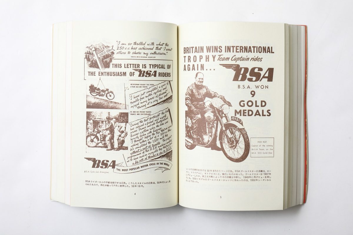主要メーカーからマニアックなメーカーまで、1950〜’60年代の英国の専門誌に掲載された1ページ広告を1冊にまとめ、日本語の解説を加えた広告ヴィジュアル図鑑。資料として役立つ上に、洒落た広告が多いのでパラパラと読んでいるだけでも楽しめる。1万2500円