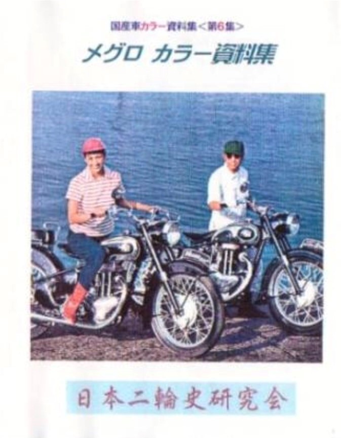 KAWASAKIの前身となったメグロのカラーカタログ、広告を集約。当時の記事の抜粋なので1〜2 色印刷のページも多く、時代感が感じられる。1500円