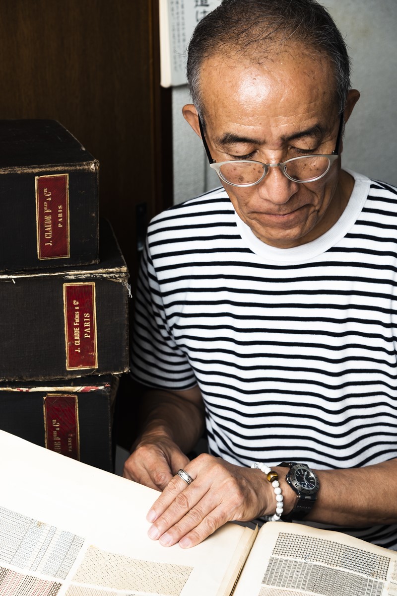 紹介する1800年代〜1900年初頭のフランス・イタリアの生地見本は、40年前に田村さんがNYのオークションで競り落とした一生の宝物。浮き沈みの人生を経験してきた田村さんの支えとなってくれる心の図鑑だ。