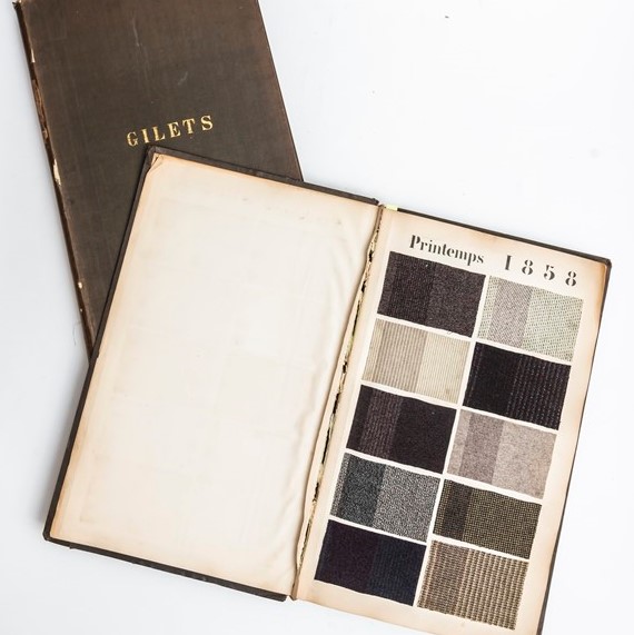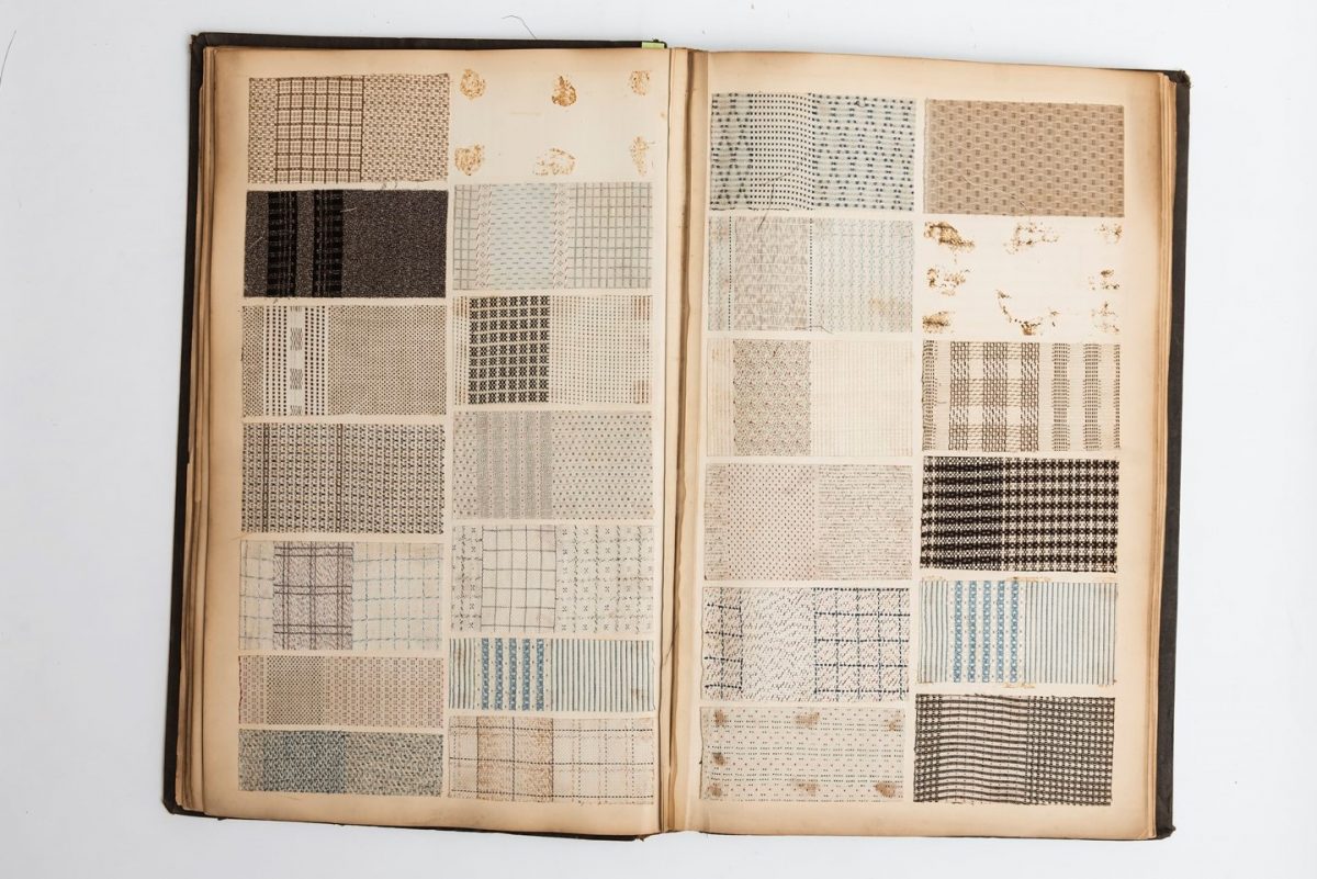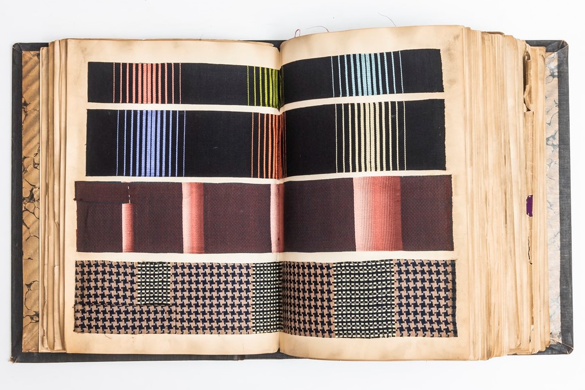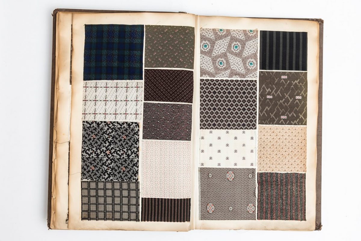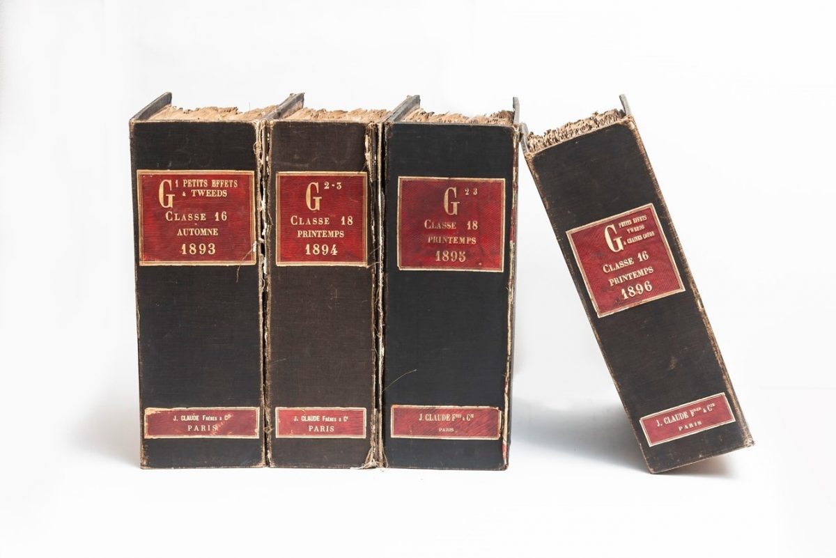 数冊に分けてまとめられた生地見本は、すべて1890年代の生地見本。現代の量産体制では再現できない繊細で独創性のあるパターンばかりだ。