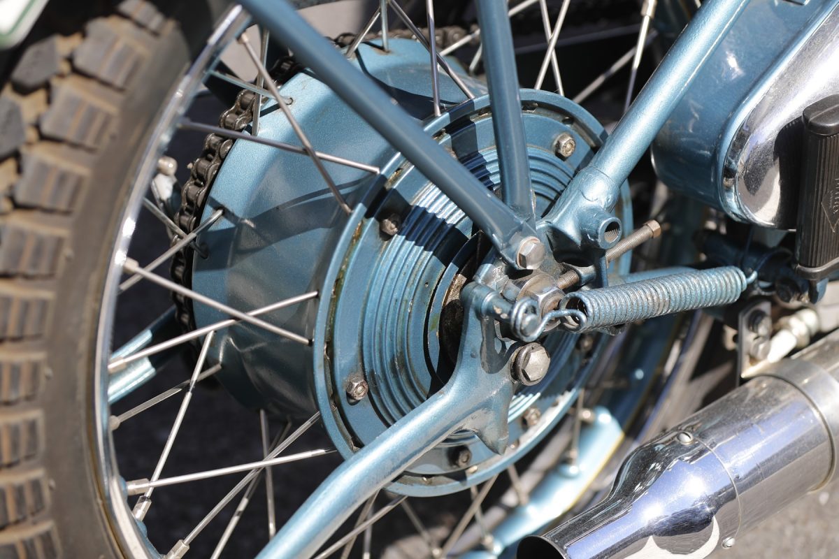 リジッドフレームが純正で採用されていたのは1954年まで。そして、’47年以降はハブクッションのオプションがあった。ハブクッションを装備すればリジッドフレームのラインに影響を及ぼさずに、数センチはストロークするので性能は段違いだ。