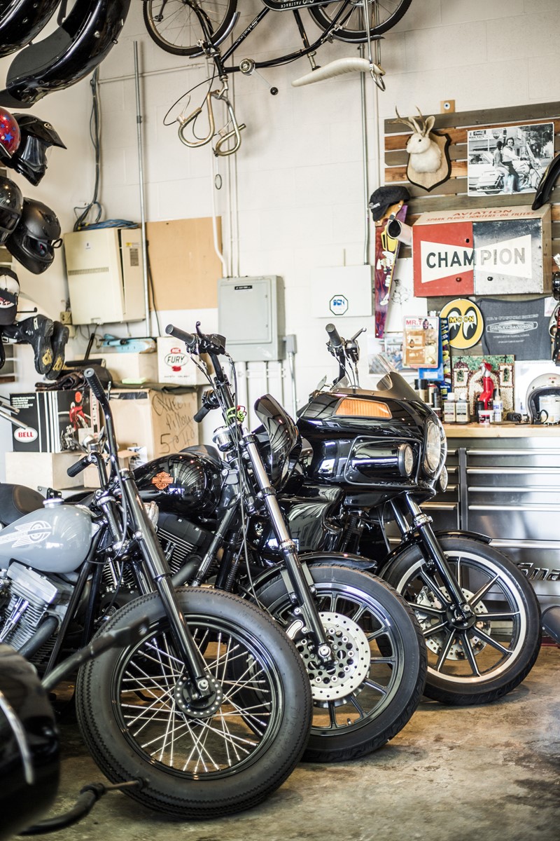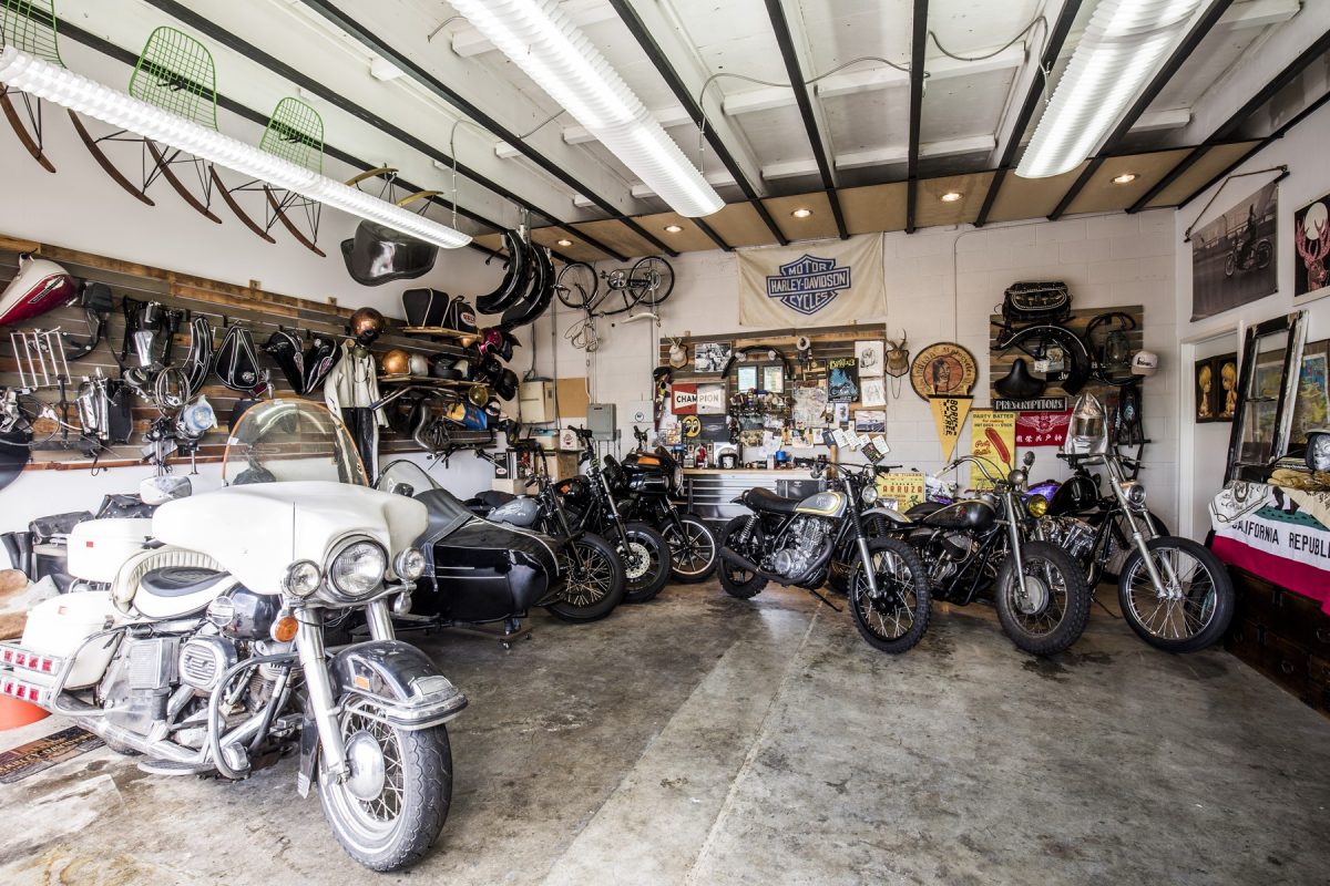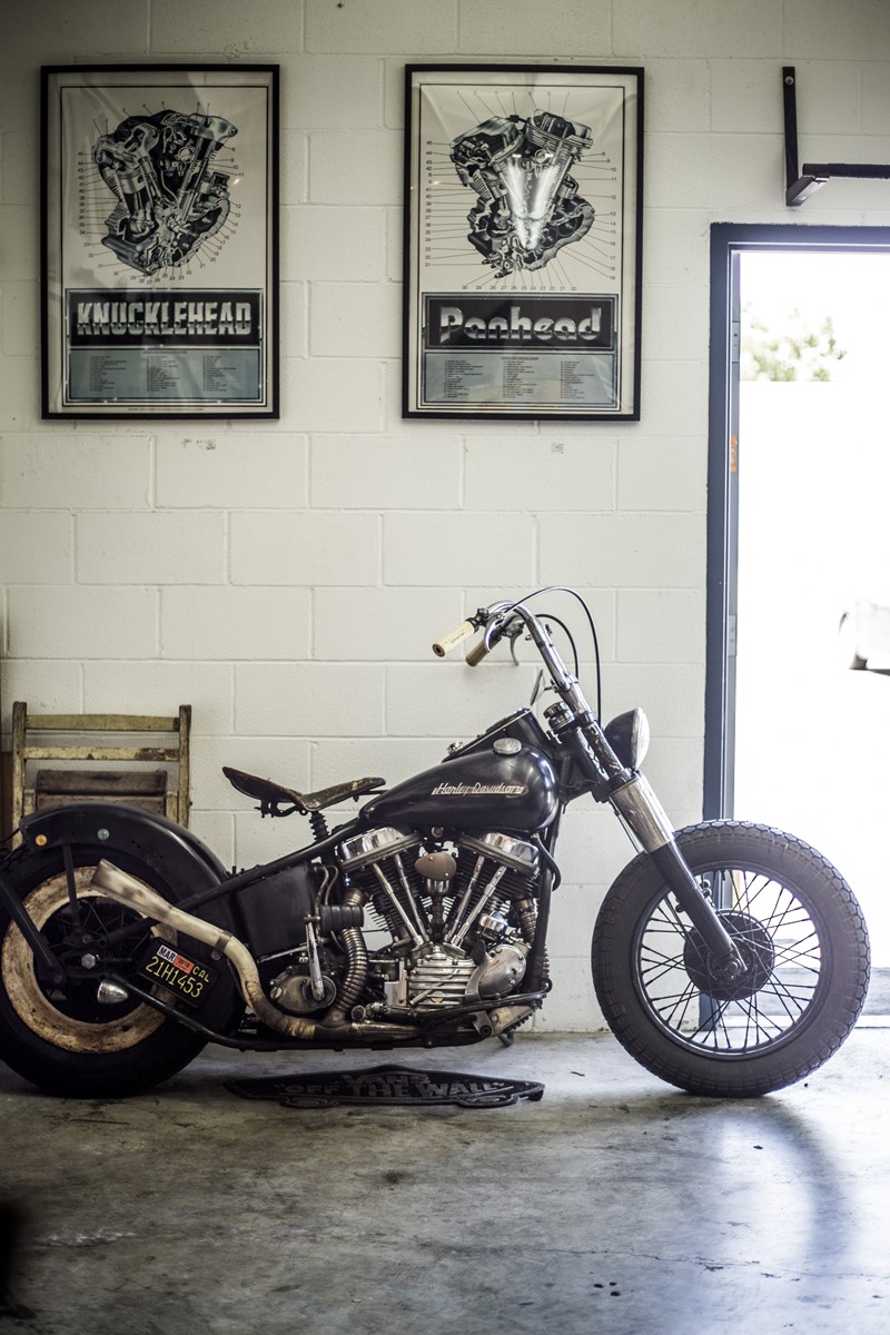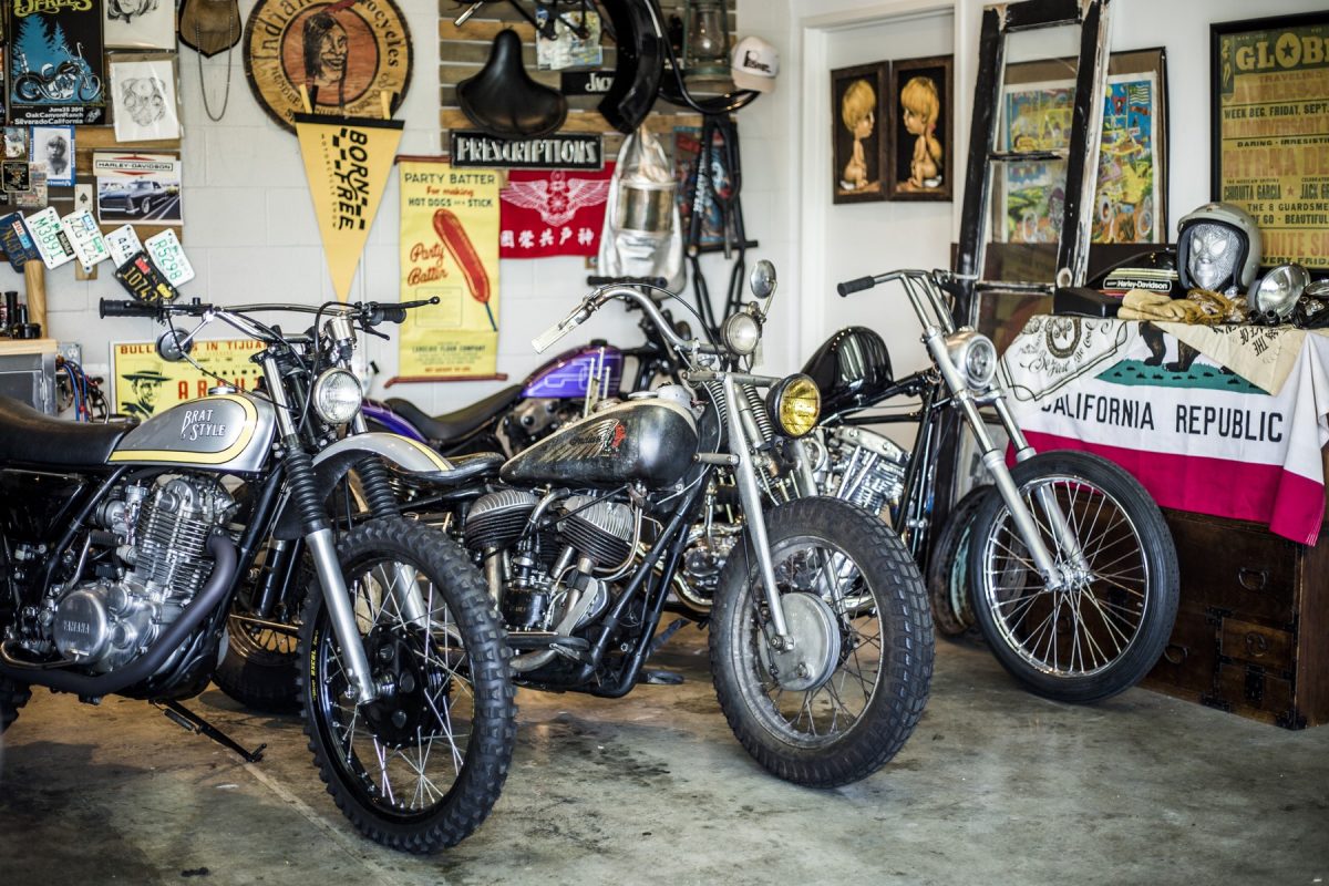 ふり返ればパンヘッド。四角いガレージだけど死角なし。エボリジッドとの乗り味の違いを語れるのはジョンさんぐらいだ。