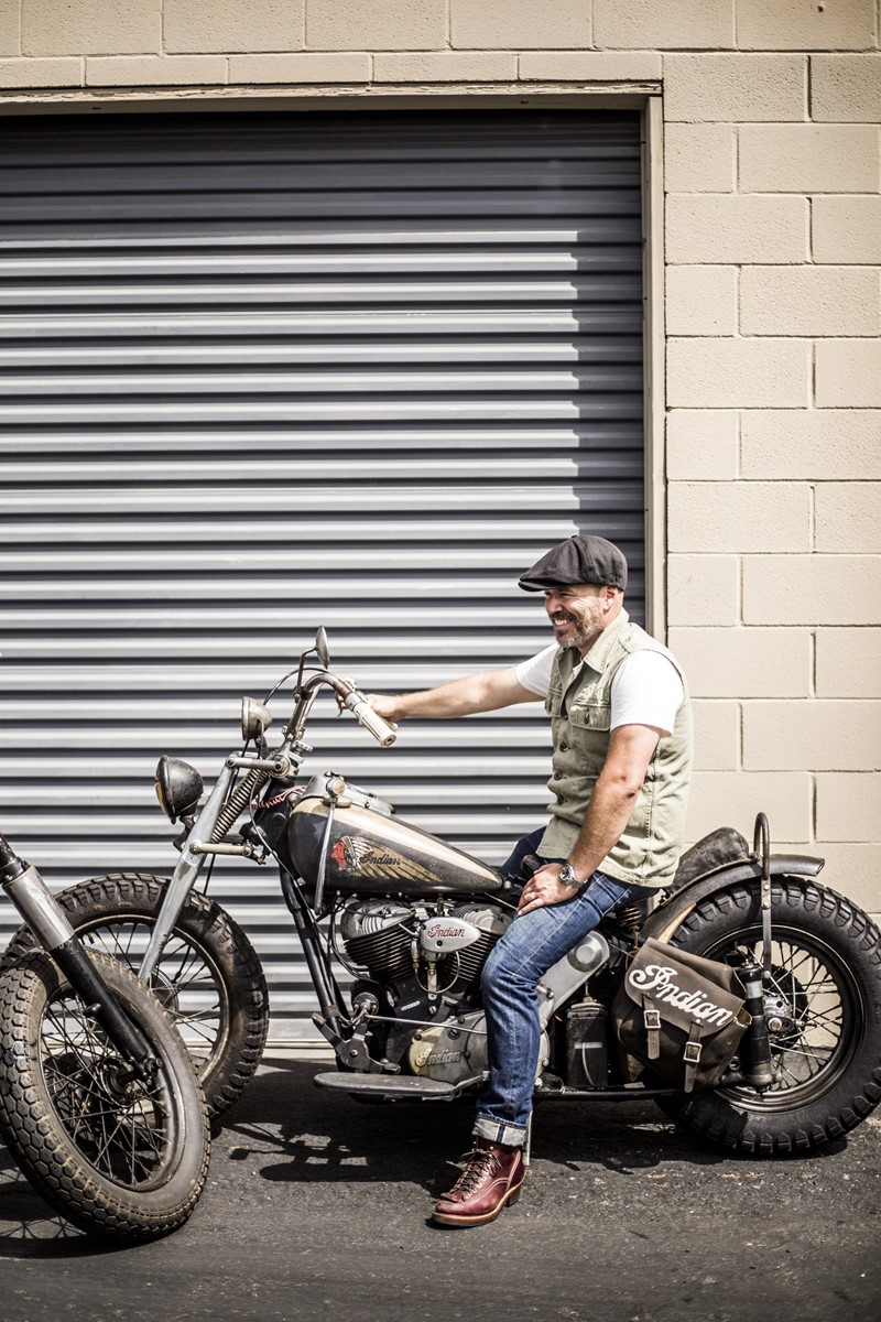 現在は’41年のチーフがフェイバリット。ジョンさんはスカーフを巻く紳士なスタイルで跨る。全部のご機嫌を上手くとらないと動かなくなるのが旧車。モテる、いや持てる男はつらい。