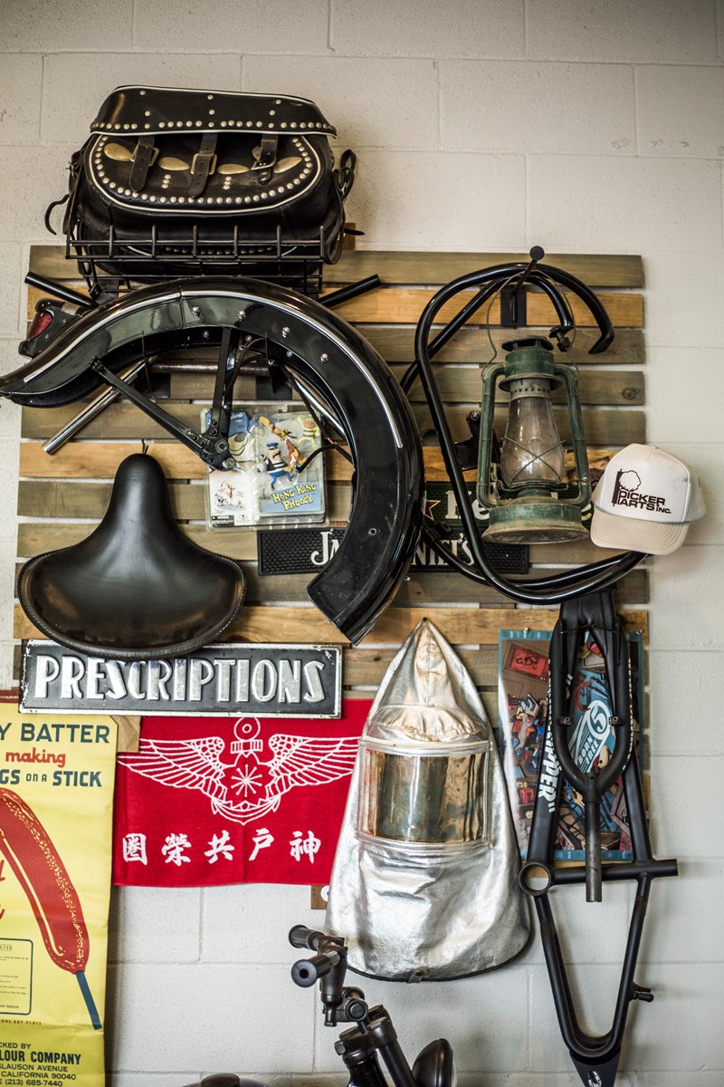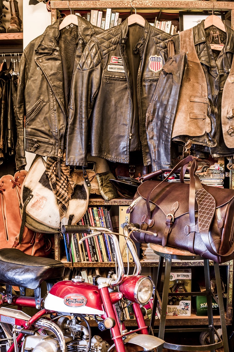 ヴィンテージウエアのセレクトも、ガレージにおかれる小物やアートも、すべてバイクカルチャーに由来するもの。好きだから集めたくなる。ファッション好きではなく、なんせバイク好きなもんで……ね。