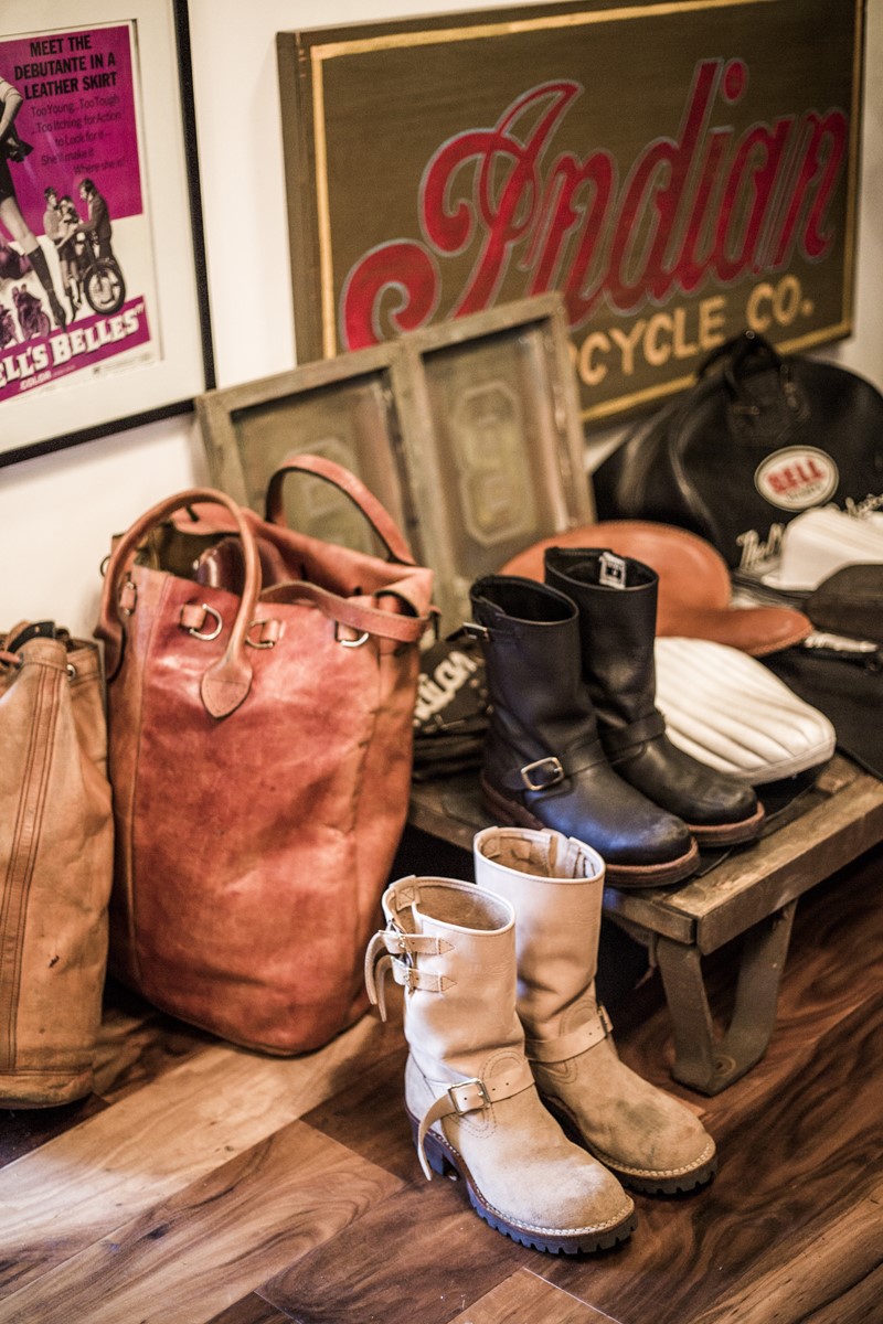ウエスコのボスが何足も並ぶ。ダブルストラップ等々、日本のバイクファッションシーンが作り出したトレンドもしっかりと取り入れているのに驚く。