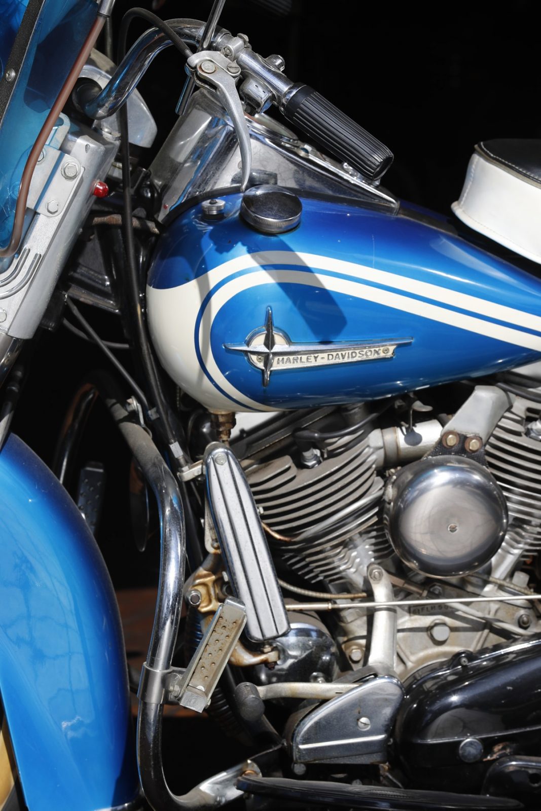 1950〜’60年代、ハーレーの機構は大きな進化を遂げた。’49年のハイドラグライドでフォークが油圧になり、’52年スポーツモデルのKモデル登場と同時にハンドクラッチがオプション採用。さらに、’58年のデュオグライドからリアサスペンションの装備、’65年のエレクトラグライドで12V化した事で、ほぼほぼ操作は今のバイクと同じになった。