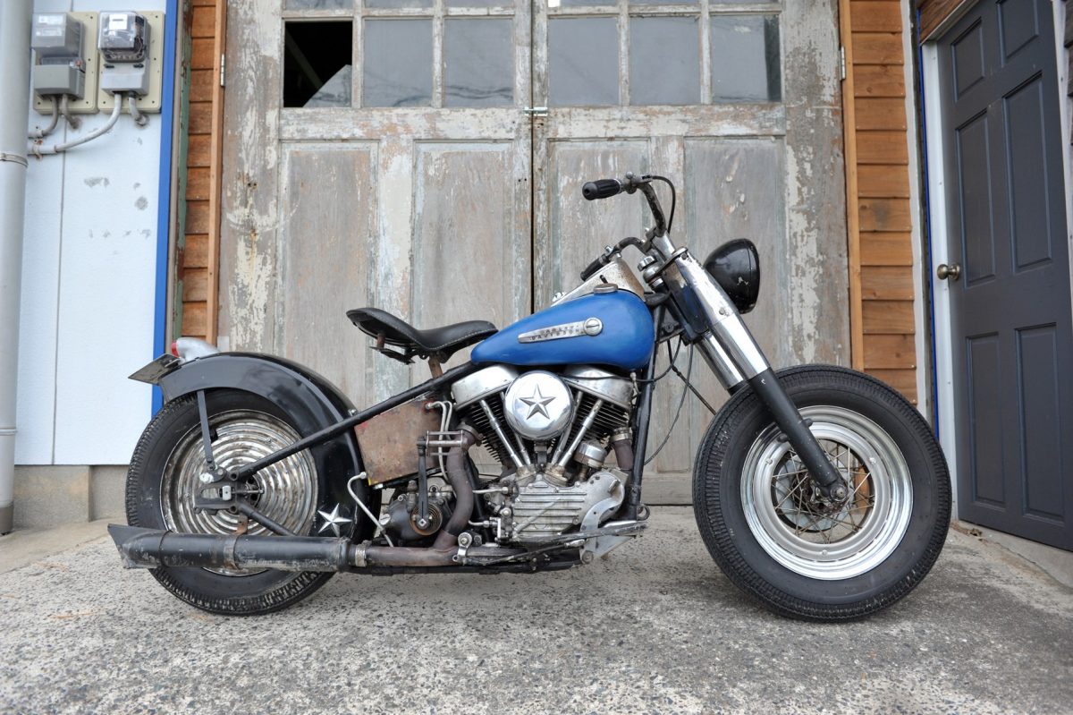 20代から乗っていたハーレー。エボ、グースネックのショベルときてパンヘッドに行きついた。大きな身体に合わせて、みな16インチの厚いタイヤを穿いているのが共通しているんだとか。