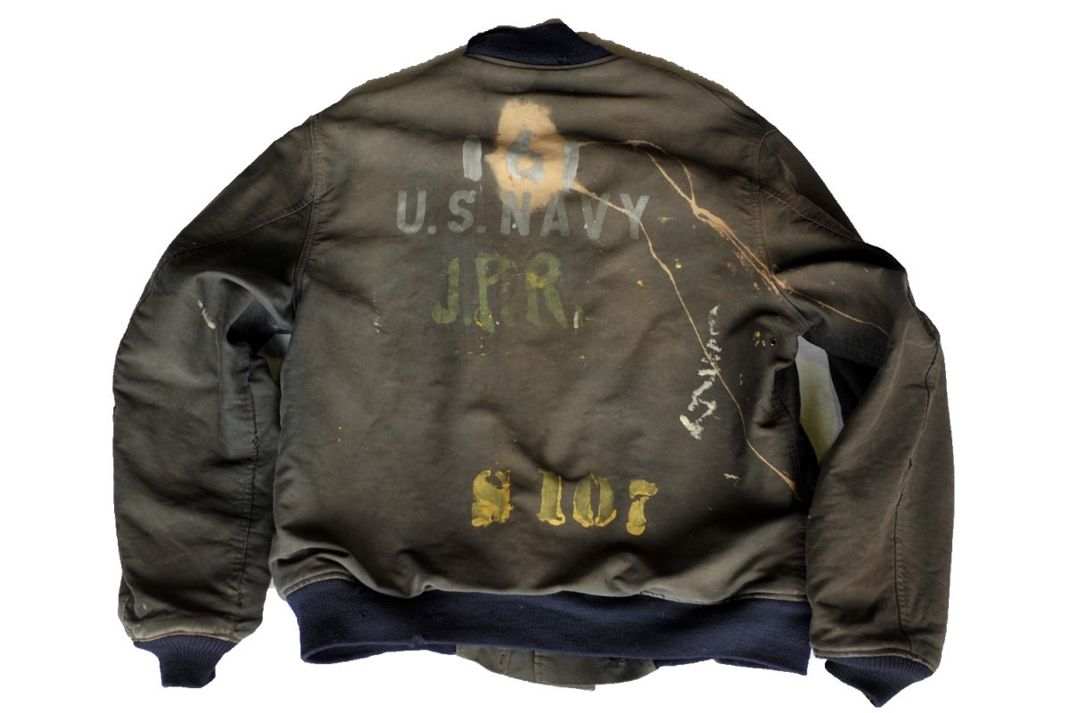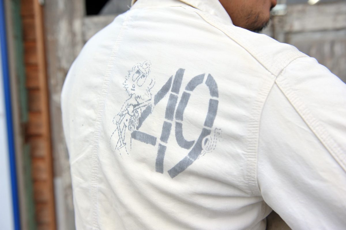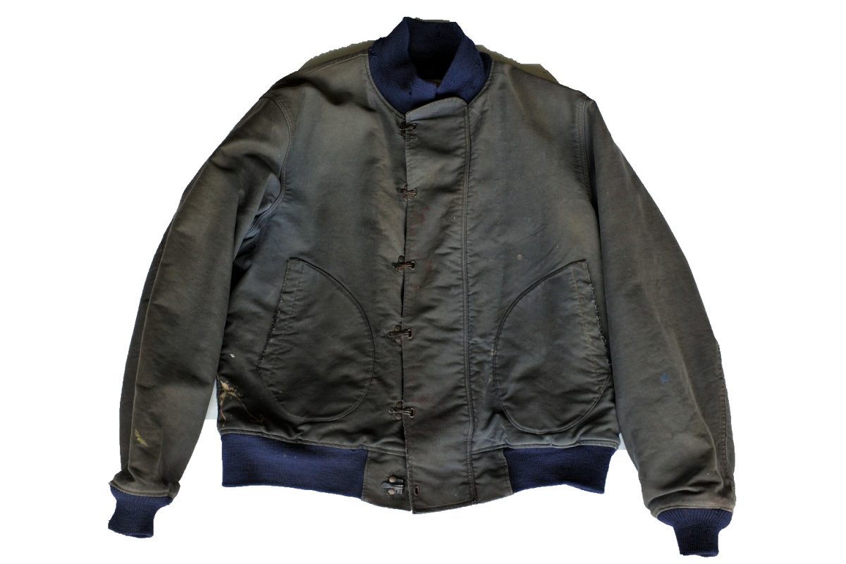 8着目にして理想のボロさとサイズにたどり着いたというNAVYのフックジャケット。中綿とビニールが入っていて機能性に優れる。バックペイントもお気に入り。