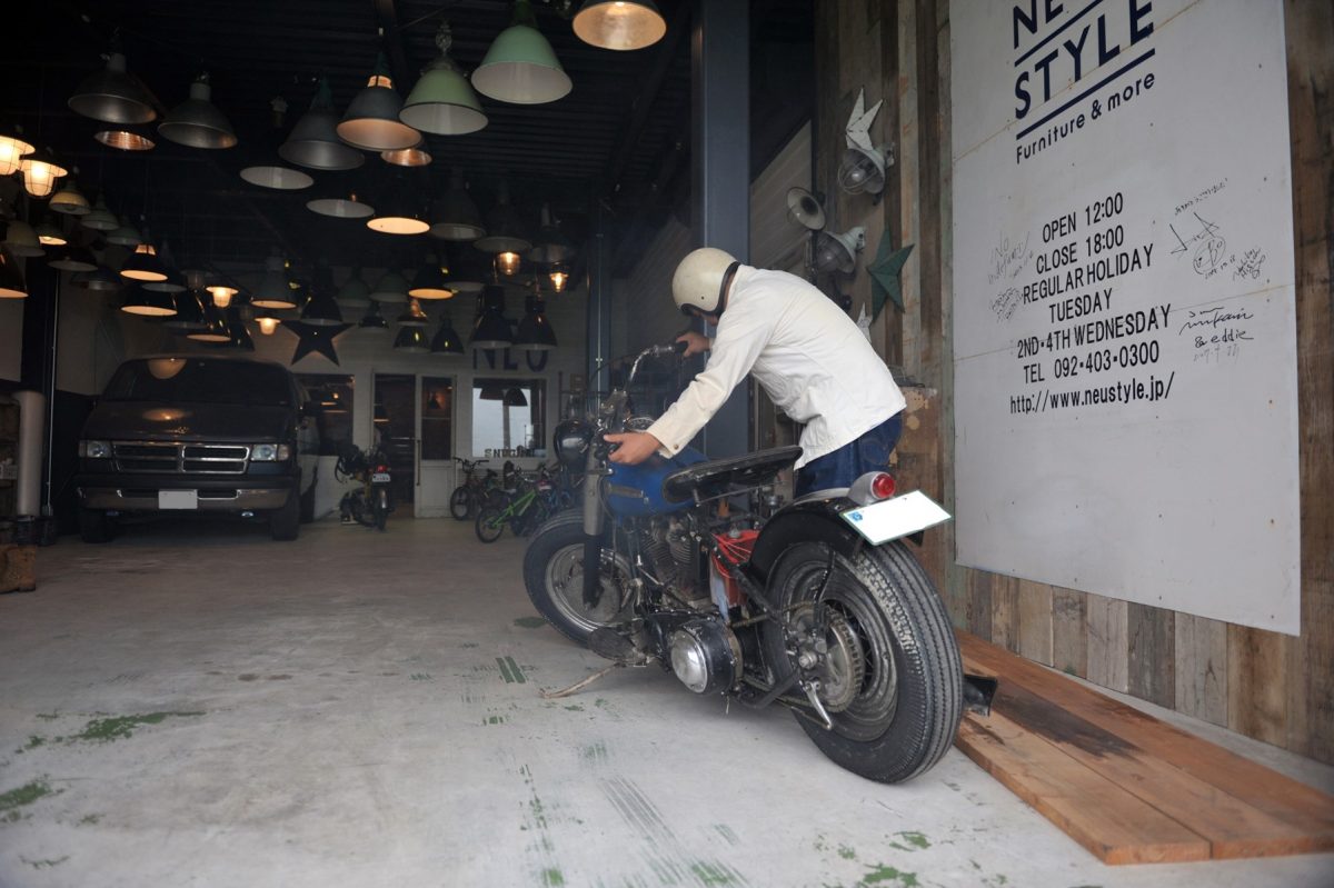 「中学生の時からヴィンテージが好きで、クルマやバイクもアメリカが好き。周りもそういう人たちが自然にいる環境だったんです。20代で無垢材にこだわるオーダー家具屋を始めて、以来スタイルは変えていません。ずっとこのまま。仕事も服もクルマやバイクの好みも」。