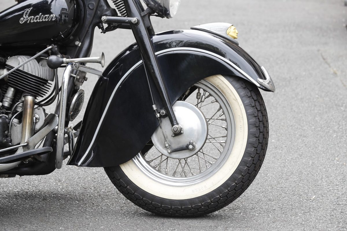 おそらく一般的にストックのインディアンのイメージが強いのがハーレーにはない、この大型フェンダー。美しいラインでタイヤを覆うディープフェンダーは’40sインディアンの象徴だ。