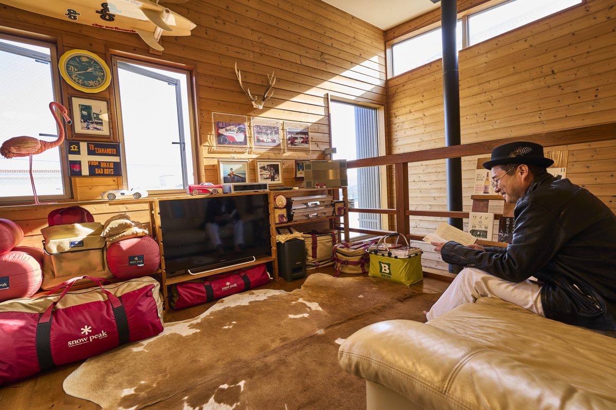 こちらが2階リビング。山本さんのアウトドアギアの収納場所としても活用中なのだ。