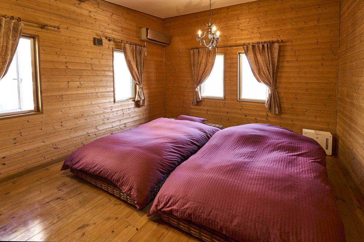 まるでコテージのような雰囲気のベッドルーム。木に囲まれた空間で、ゆっくり疲れを癒すことができる。