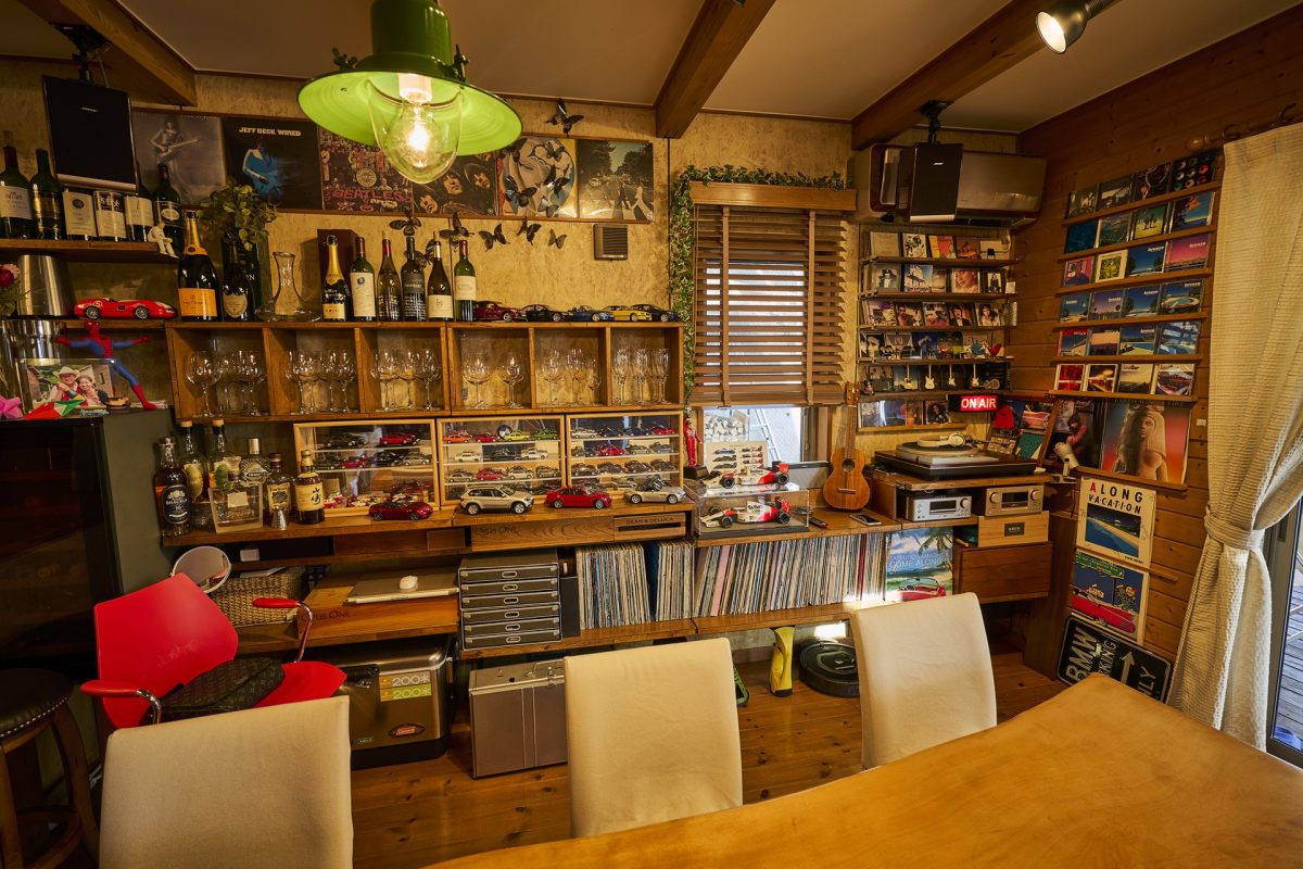 こちらの壁は山本さんの趣味モノで覆い尽くされている。圧巻なのはレコード。「学生時代はほとんどレコードで金が消えてましたね(笑)」。かつては2000枚ほどあったというから驚きだ。眺めているだけで至福のひと時になること間違いなし。