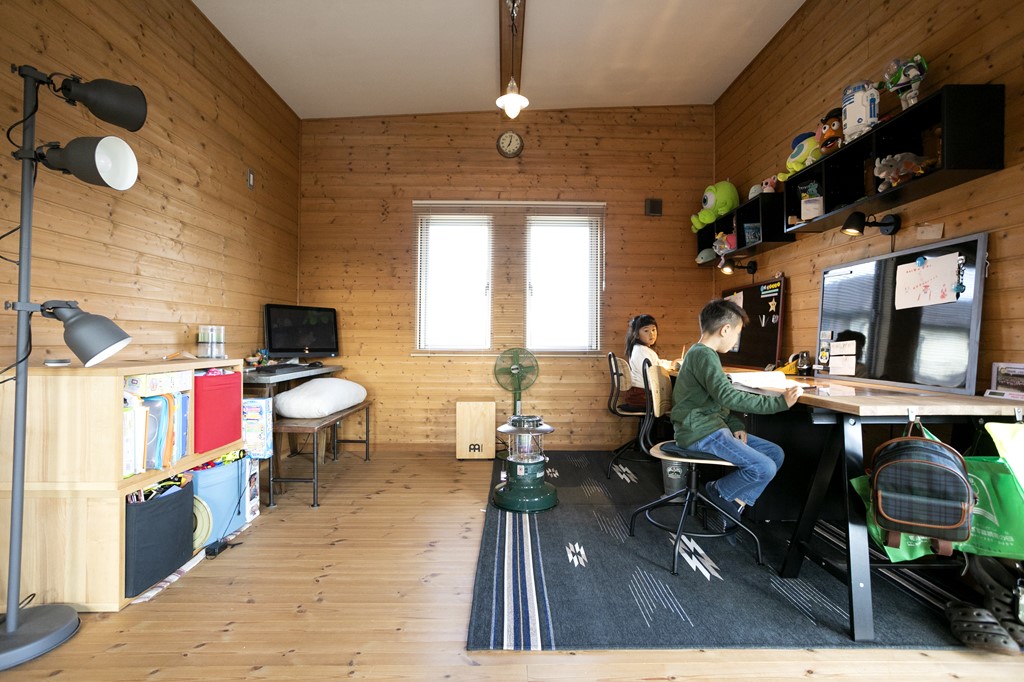 こちらは2階の広々としたロフトを勉強部屋に活用しているお宅。2階で勉強する子どもたちの気配を1階にいても感じられるのがメリット。家事をしながらも様子がわかるので安心だ。
