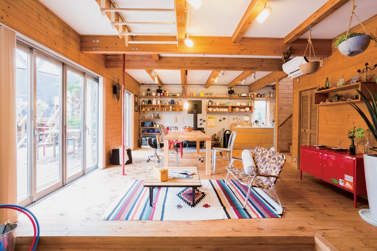 この薪ストーブひとつで家全体を温めてくれる優れもの。もちろんメインテナンスや薪の確保など手間はかかるが、この暖かさは格別。自然と薪ストーブの周りに人が集まることから、土間リビングにする住人も多い。