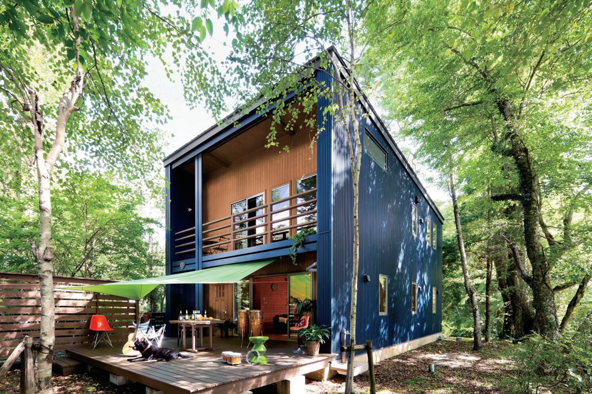 こちらは自然豊かな土地に建てられた「ワンダーデバイス」。広いウッドデッキがあり、その奥に大きな開口部と玄関ドアがあるという、“フランク”。ウッドデッキの様子がベランダからも見られて楽しそうな雰囲気だ。