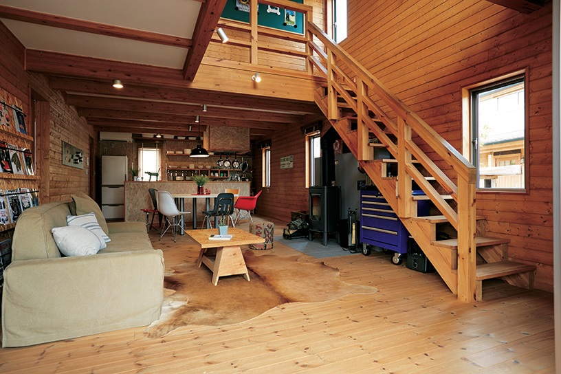 こちらのアウトドア好きの山本さんのご自宅は14年前に建築。木が経年変化で一段と落ち着いた雰囲気に。この空間があまりにも居心地がよく、アウトドアにすっかり出掛けなくなってしまったんだとか。
