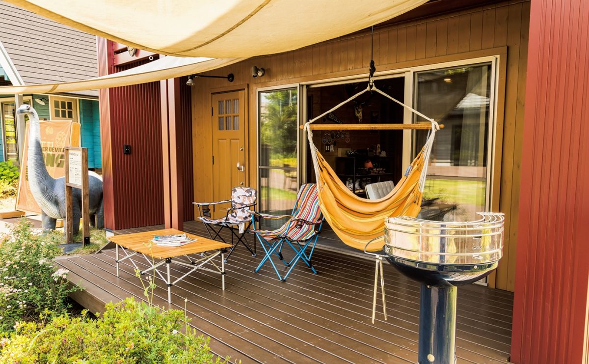 「ワンダーデバイス」のウッドデッキは、このように家族でゆったり過ごすのにも十分な広さがある。BBQをしたり、昼寝をしたりと活用方法は無限大だ。広い開口部で土間空間やリビングとつながり、大きなリビングのようにも使える。