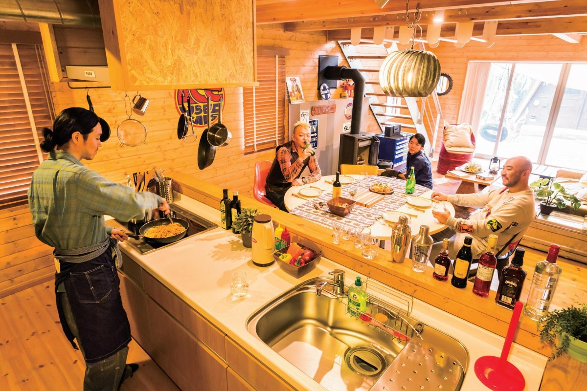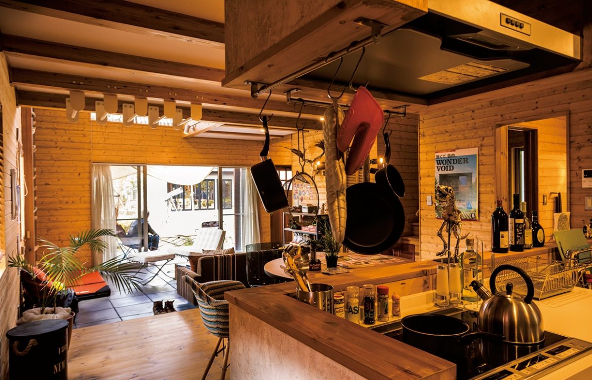 だから、週末に友人を招いて土間空間で遊んでもらっている間に、自慢の料理の腕を披露するのにも打ってつけ。独りぼっちにならないばかりか、これ見よがしに腕だけでなく、お気に入りの食器や調理器具、調味料だって自慢できる。