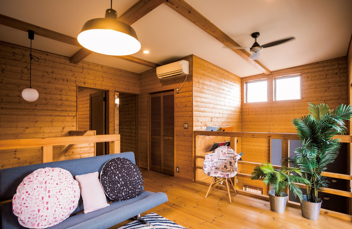 たとえばこの吹き抜けのロフト部分。上の写真ではソファを置いてリビングとして利用している。
