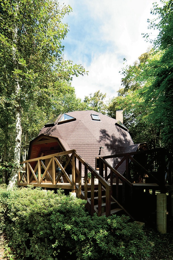 森の中に佇む「BESSドーム」。球体は自然にしっくりと馴染む。こんな場所に別荘や趣味部屋として建てるのもアリだ。
