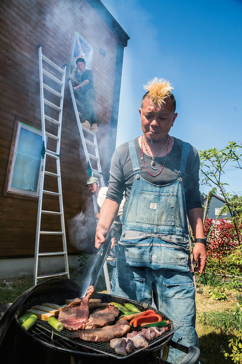 屋外での醍醐味はやっぱコレでしょ! のBBQ。作業で汗を流した後は、極上の肉とビール。これに勝るものはない。とことんまでメンテを楽しむ姿勢こそが、「BESS」の家に住む“極意”なのだ!