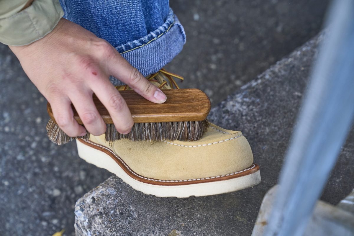 レッド・ウィングのレザープロテクターを試してみる。まずはブラッシングで汚れを取り除くことが重要。濡れた場合は要乾燥!