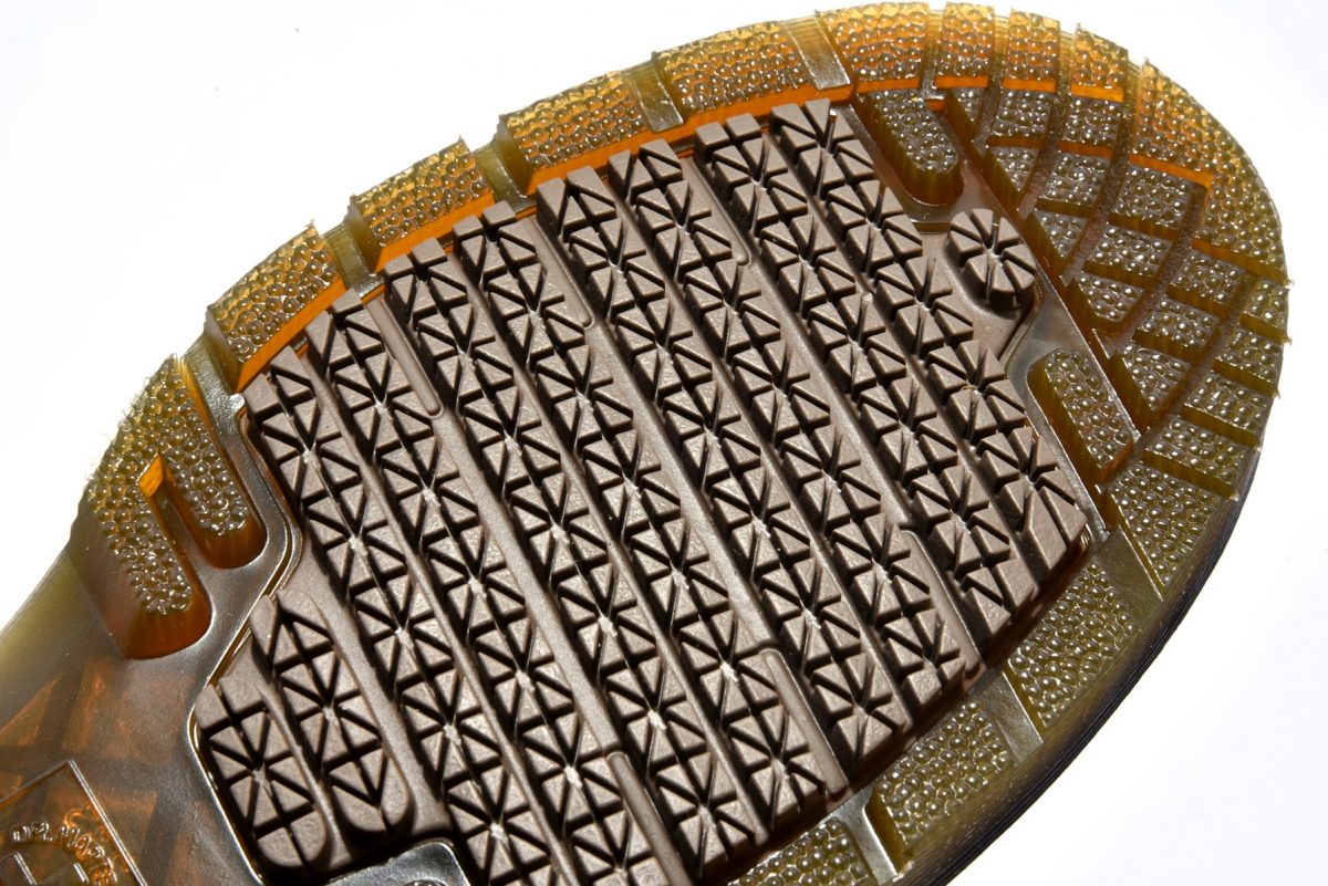 PVCとラバーを組み合わせ、オリジナルのパターンを採用したGRIP-TRAXソール。耐滑性と耐油性に優れ、滑りやすい足場や環境でもグリップ力を発揮し、幅広い現場で活躍。