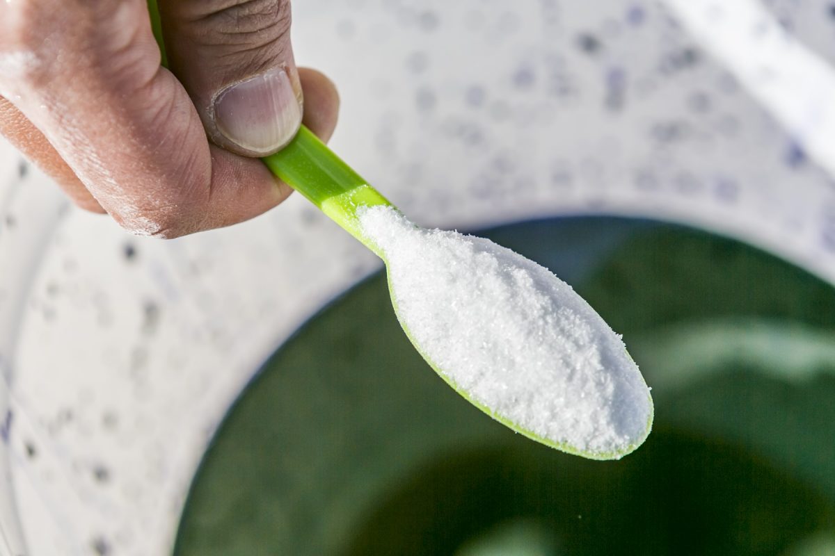 そして染色の固定剤として、約30gのセスキ炭酸ソーダを加えよく混ぜ合わせる。これで染料は出来上がり。