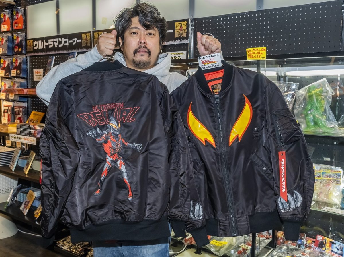 墓場の画廊はその名のとおり「画廊」なので、定期的にこのようなポップアップストア的なイベントを開催している。そのため、取材日の店内は『帰ってきたウルトラマン』尽くしだったというわけ。もちろんオンラインショップで扱っている商品も販売しており、デビルマンのスカジャンをはじめとしたアパレルやグッズがビッシリと並ぶ。