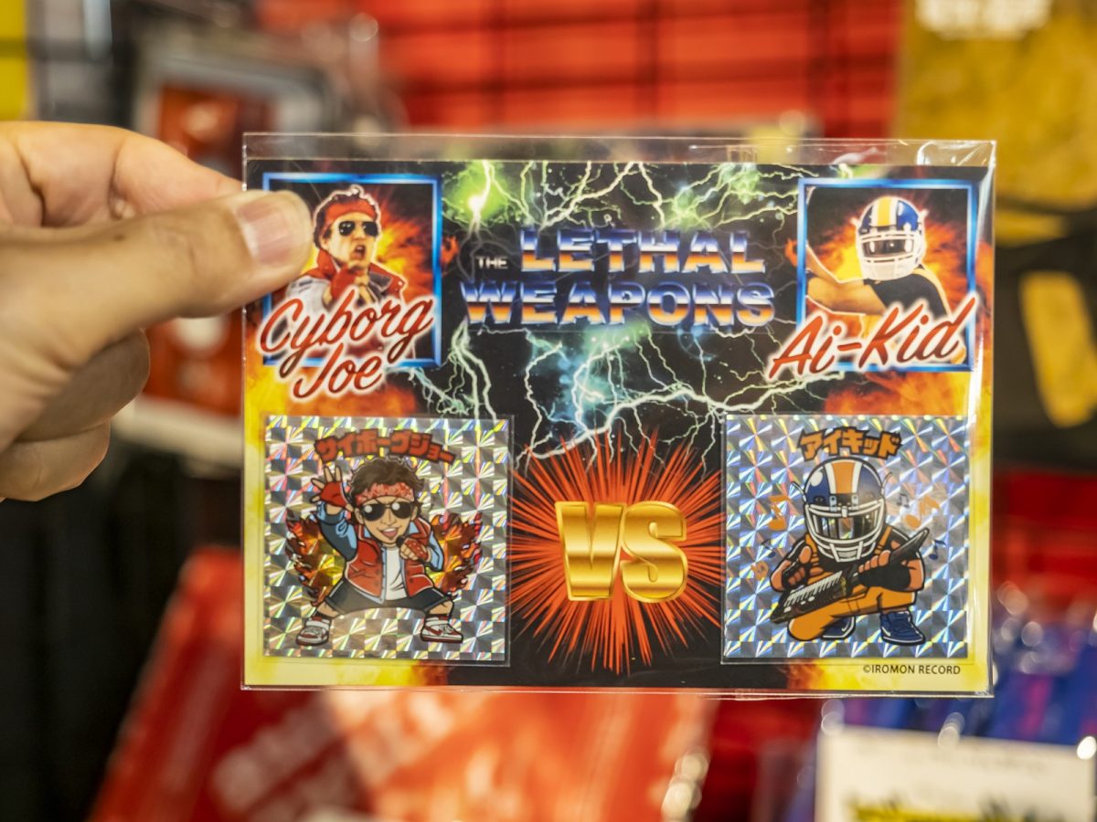 ’80~’90年代のカルチャーをテーマに活動する日本人とアメリカ人の2人組ロックユニット「ザ・リーサルウェポンズ」。グッズのデザインも当然’80sのテイストだ。ステッカーセットはビックリマン風のキラキラ仕様。恥ずかしくてカッコいい’80年代をリスペクト!