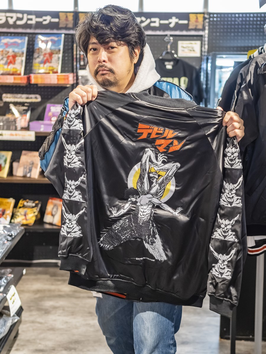 ADちゃんが真っ先に手にしたのがデビルマンのリバーシブルスカジャン。胸、背中、腕に入るデザインはすべて総刺繍という力作。そのほかにも寺沢武一のコブラのスタジャンや横山光輝の三国志スカジャンなどがラインナップ。気になる人は公式WEBでチェックを!