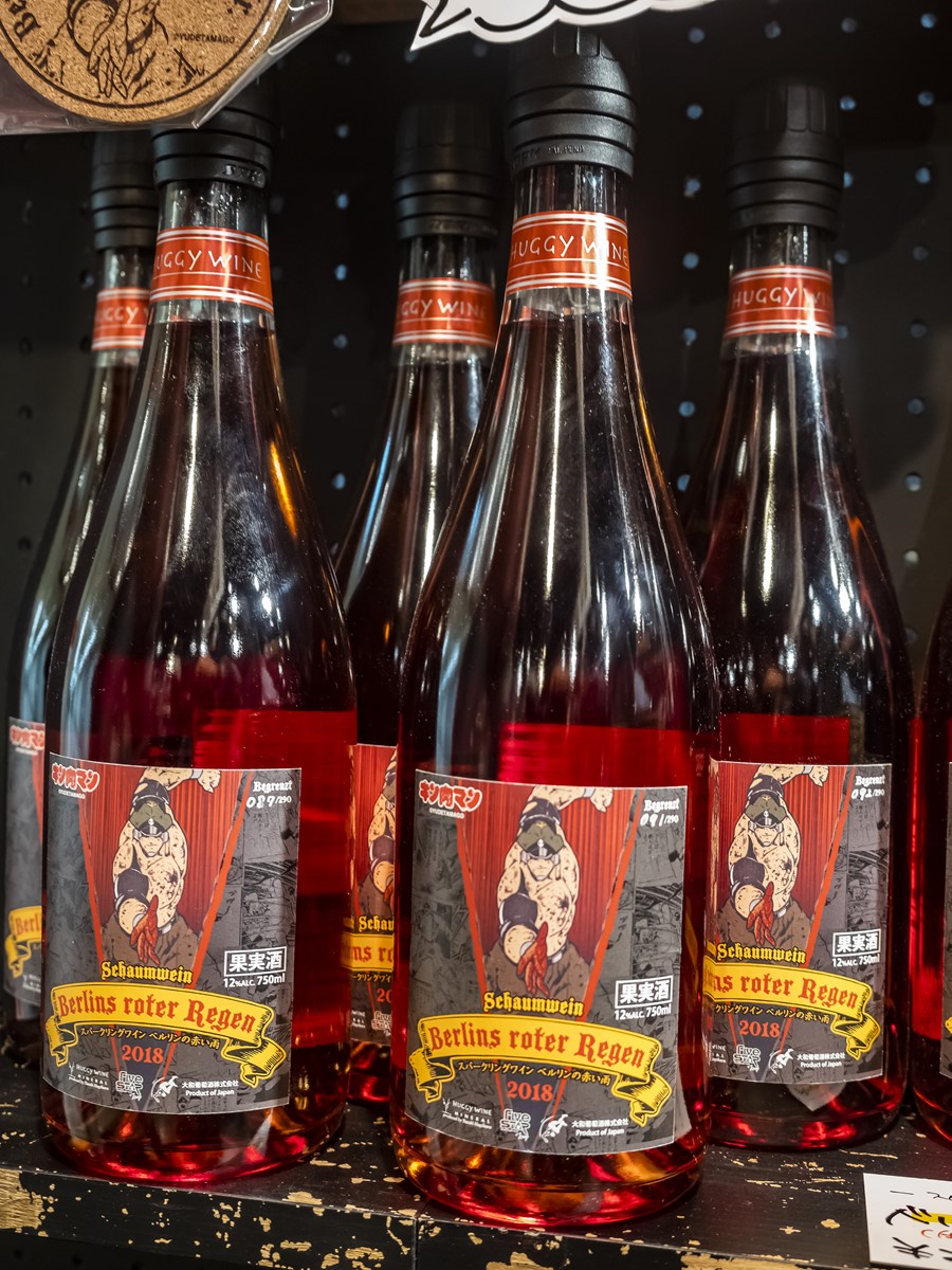 ネーミングとパッケージデザインが秀逸なキン肉マンのお酒シリーズ。ビッグ・ザ・武道とヴィンテージワインのコラボ葡萄酒「ストロング・ザ・武道」や秩父錦の酒造「八尾本店」とコラボした「悪魔将軍 技の極み」。さらにはブロッケンJr.の技名が与えられたスパークリングワイン「ベルリンの赤い雨」も。各ボトルにはシリアルナンバーが付く。「これはもったいないく飲めない!」とADちゃんは飾ることに。
