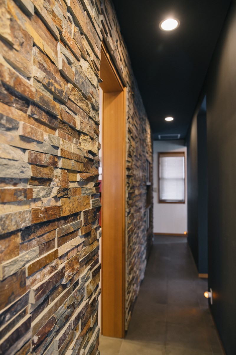 中でもこだわったのはリビング。あえて壁の素材を三種類使うことで、同じ空間でも異なるテイストを感じられるように工夫しました。特にアメリカのミッドセンチュリー期に流行った石を積み上げた壁は、かなり苦労したと施工してくれた職人から言われましたよ(笑)」