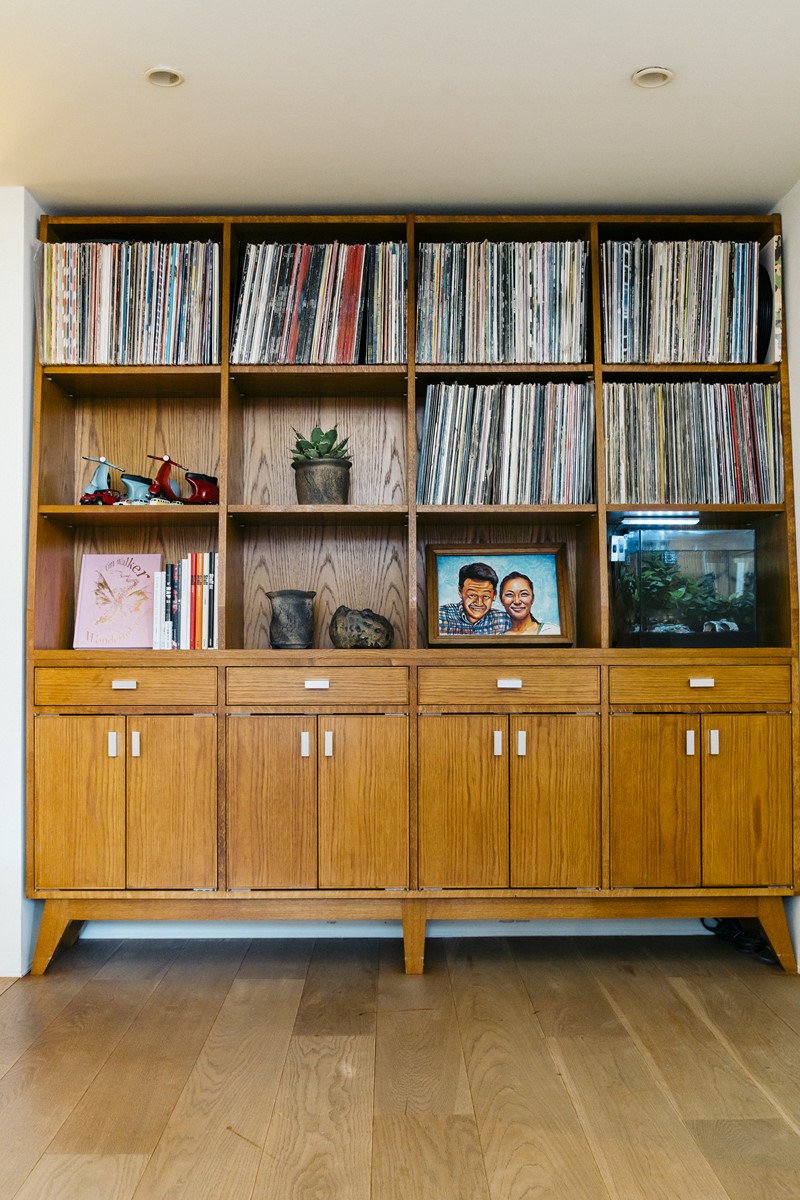 「内装はすべてアンフィニッシュの中嶋さんにお願いしました。床や壁、サイズに合わせたワンオフの棚なども作ってもらいましたが、これが大正解でした。今年でちょうど10年経つのですが、床の木材がいい感じにエイジングし、より愛着が湧いています。