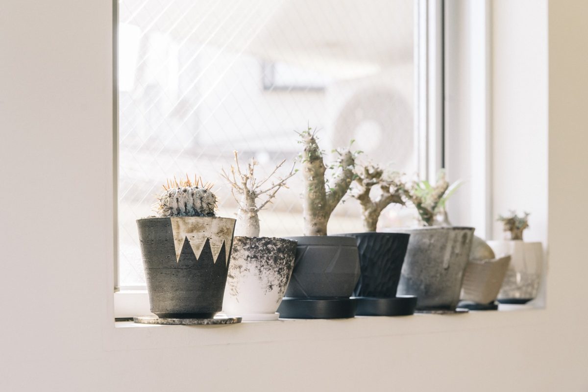 最注目のポットブランドであるSYNから、カルト的な人気を誇るインビジブルインクまで絶品の鉢を使い、空間をアレンジしている。