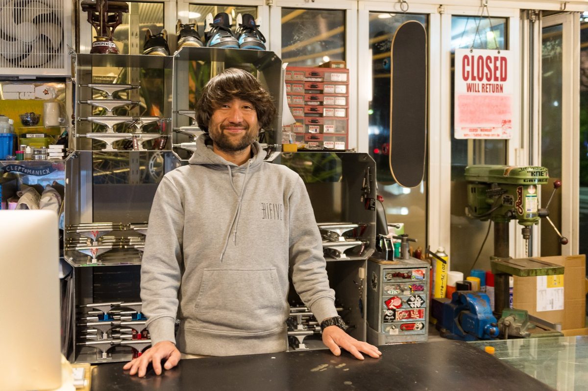 中学生の頃にスナック菓子カールのカレー味を食べながらローカルスポットに赴いたことがきっかけで、カレーというキャッチーなニックネームがついた冨田さんが営む「5050」は、東京は城南地域のシーンを支えるプロショップ。