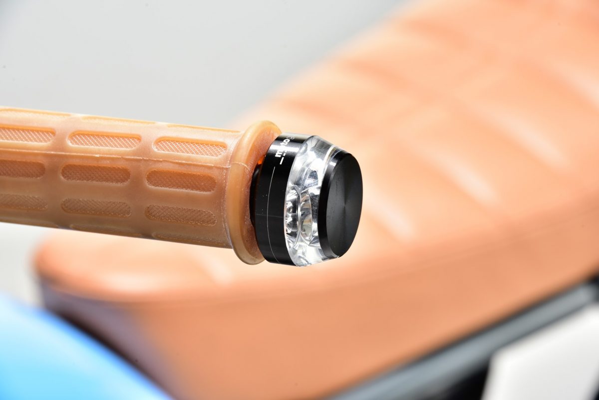 ウインカーはハンドルのバーエンドに埋め込んで、ハンドル周りをすっきりと仕上げている。