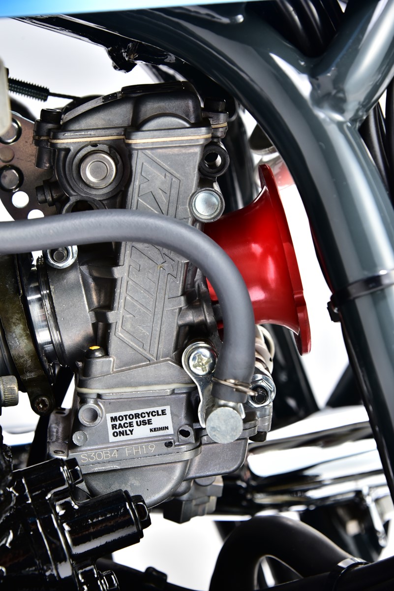 高い性能で知られるKEIHIN製のFCRキャブを装備し、トマゼリ製のハイスロも組み込んでいる。
