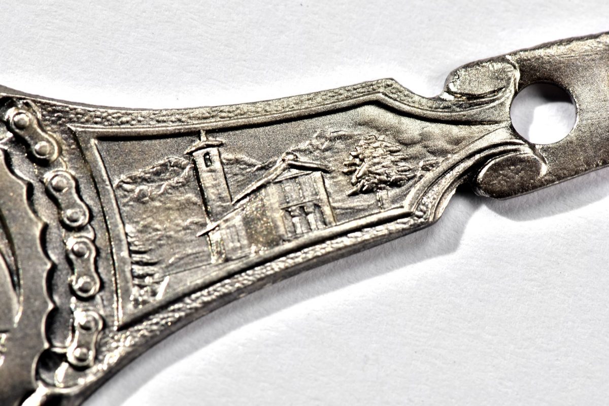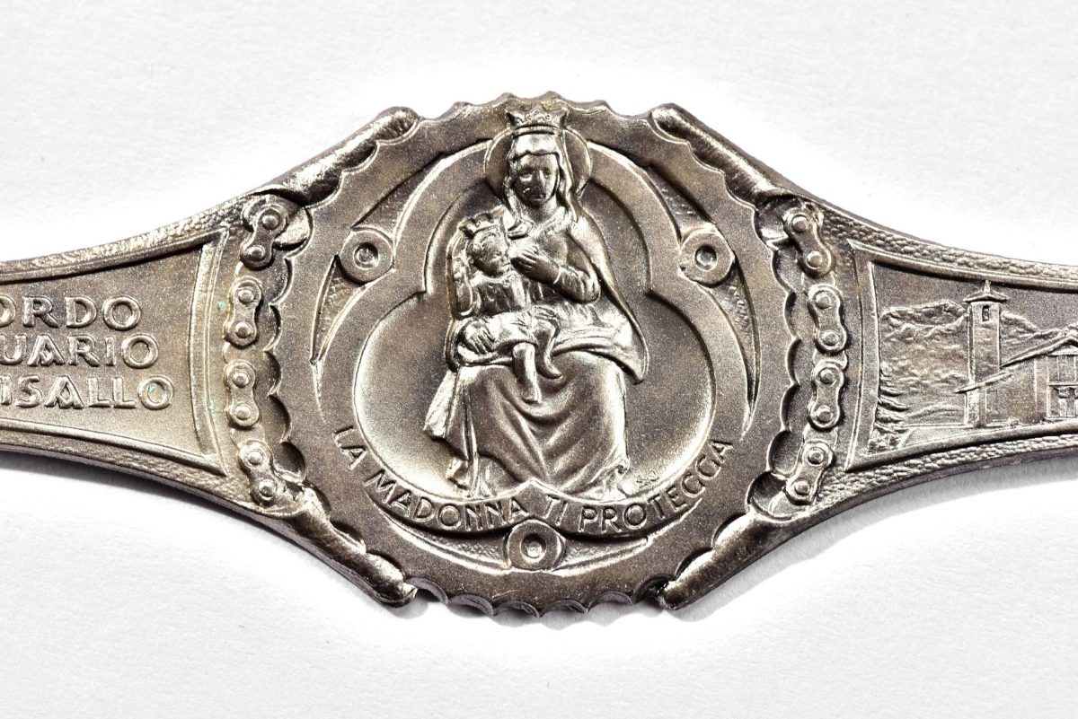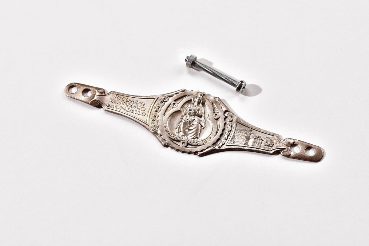 左側にはギザッロ教会の名前が彫り込まれる。このお守りはパンクや自転車事故から守ってくれるそう。とはいえ自転車は安全運転を心掛けたい!
