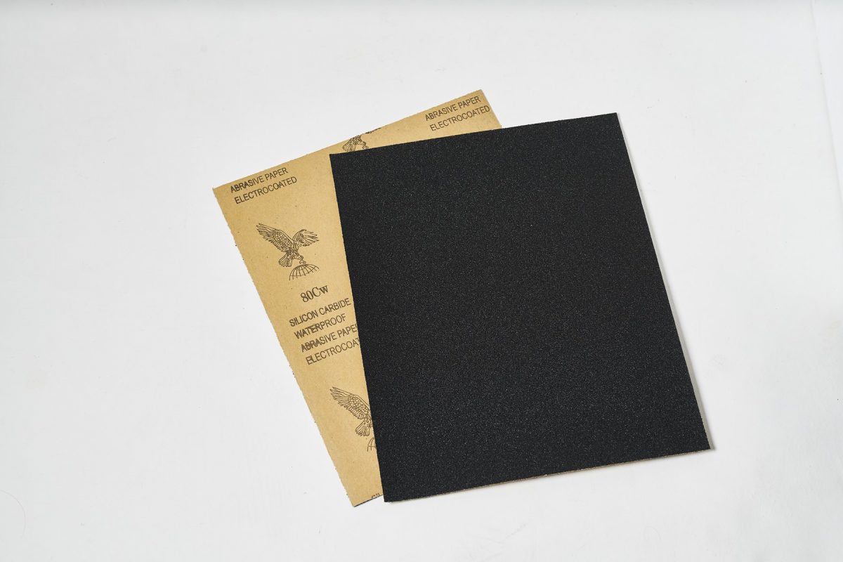 Tシャツのシワを伸ばしてからサンドペーパーを下に引けば、生地がピンッと張った状態でスプレーできるスグレモノなのだ!