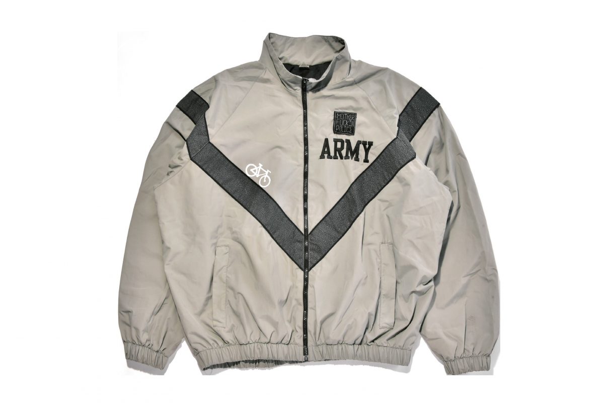 米陸軍兵士がトレーニング時に着用するIPFUジャケット。V型のリフレクターをデザインし、背面に大きく空いた通気口は蒸れにくく、トレーニングを快適にしてくれる。夜間の屋外で安心・安全な反射板付きなのが嬉しいところ。このままでもいいが、せっかくなら自転車仕様にプチカスタムしたい。