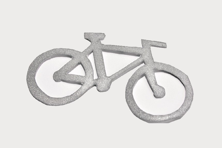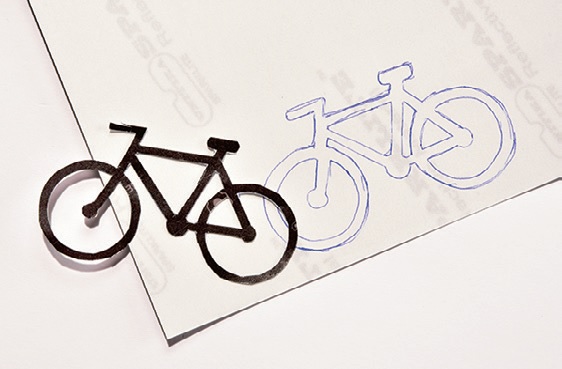 今回のカスタムは超絶カンタン! 夜間でも自転車に乗るから、リフレクターシートを自転車のシルエットに切り抜いて、ワッペンのように貼り付けてみた。型紙を用意し、まずはその形をトレース。