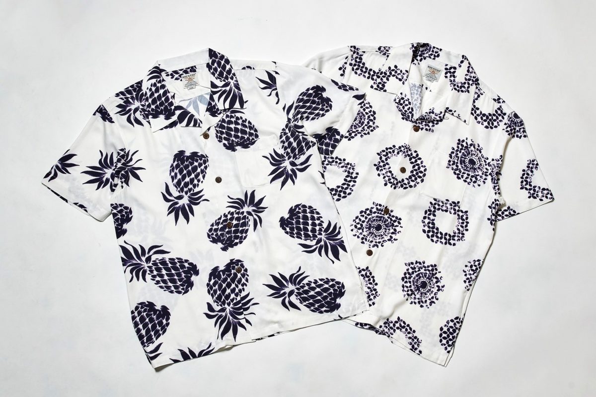 今夏の注目デザインのひとつであるトロピカル調の柄シャツ。リゾート感たっぷりの意匠をオールオーバーパターン(総柄)にて再現した、ヒューストンの新作。シンプルなホワイトボディにインディゴ抜染調プリントにて柄を表現した単色使いなので、爽やかな印象を受ける。左はアロハシャツの中でも有名なモチーフであるパイナップル柄、右は草花をモチーフとする更紗柄となっている。カラバリにてそれぞれネイビーカラーも展開される。
