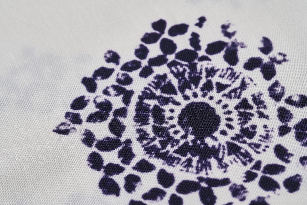 更紗は本来インド起源の柄を指すが、英訳するとCHINTZ(チンツ)に相当する。紋様を染め抜いた意匠となっており、不均一ながらバランスの取れた優しい柄となるのが特徴。オリエンタルテイストな着こなしが楽しめそうだ。