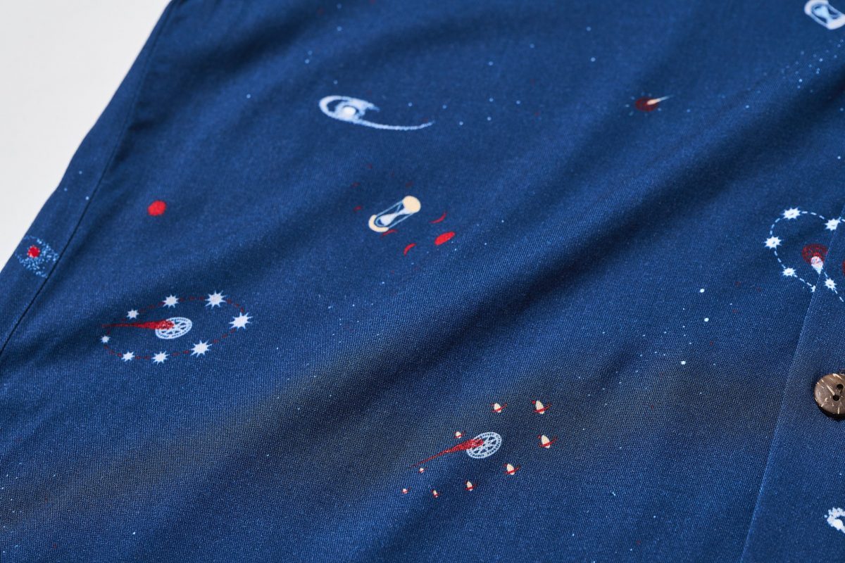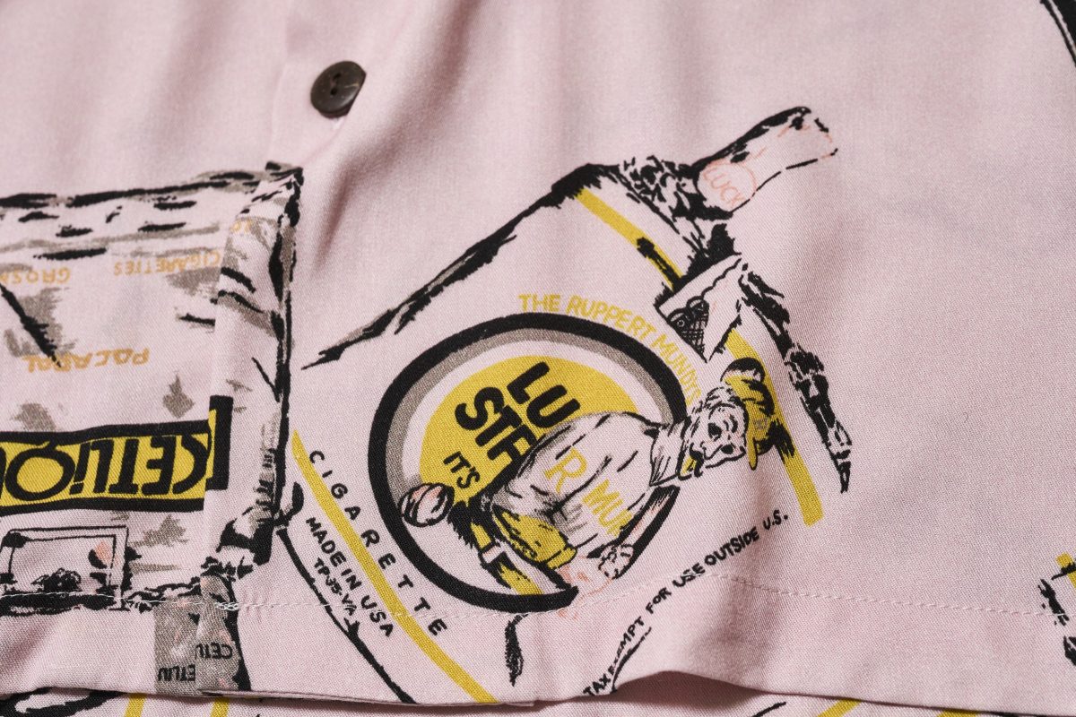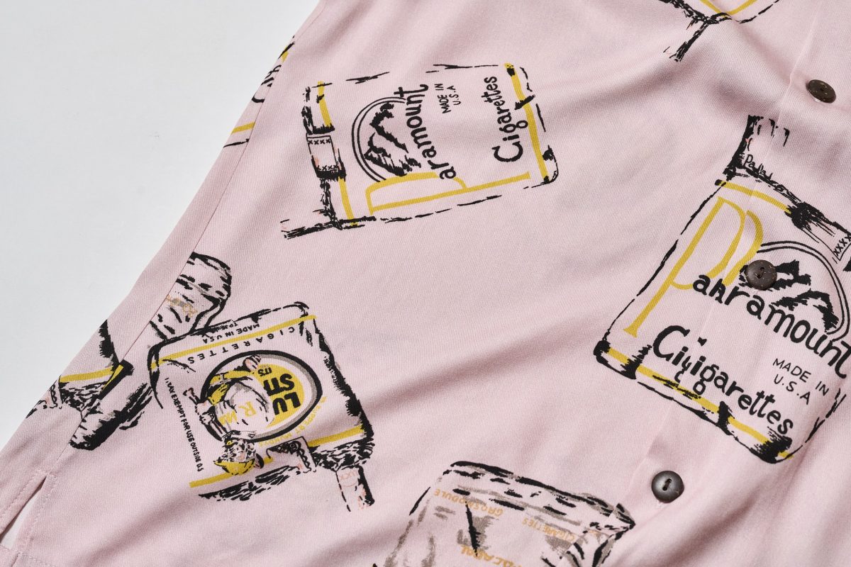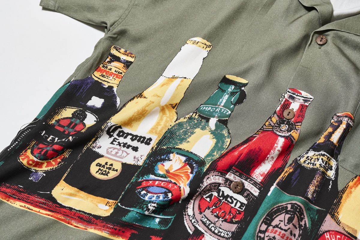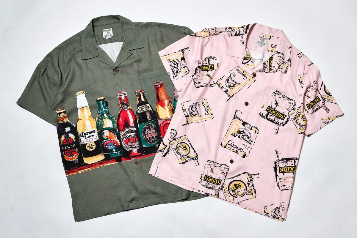 真夏のリゾートに遊びに行くと仮定する。観光名所を巡って楽しむのもいいけれど、大人の自覚がある読者諸兄には、リゾート地で味わう「酒とタバコ」で、日常からの解放を体験してもらいたい。夜の繁華街で遊ぶ時の気分を盛り上げてくれる、「酒とタバコ」モチーフの柄シャツである。このアクの強い艶感がたまらない!