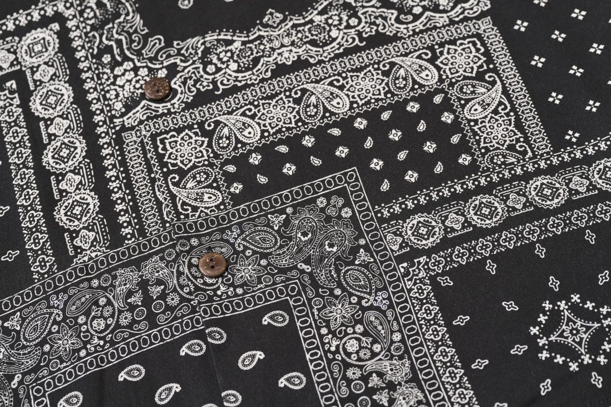 ペイズリーを基調とするバンダナ模様をランダムにパッチーワークデザインされたバンダナ柄。ストリートライクな着こなしや、淡いインディゴのダメージジーンズに似合う。
